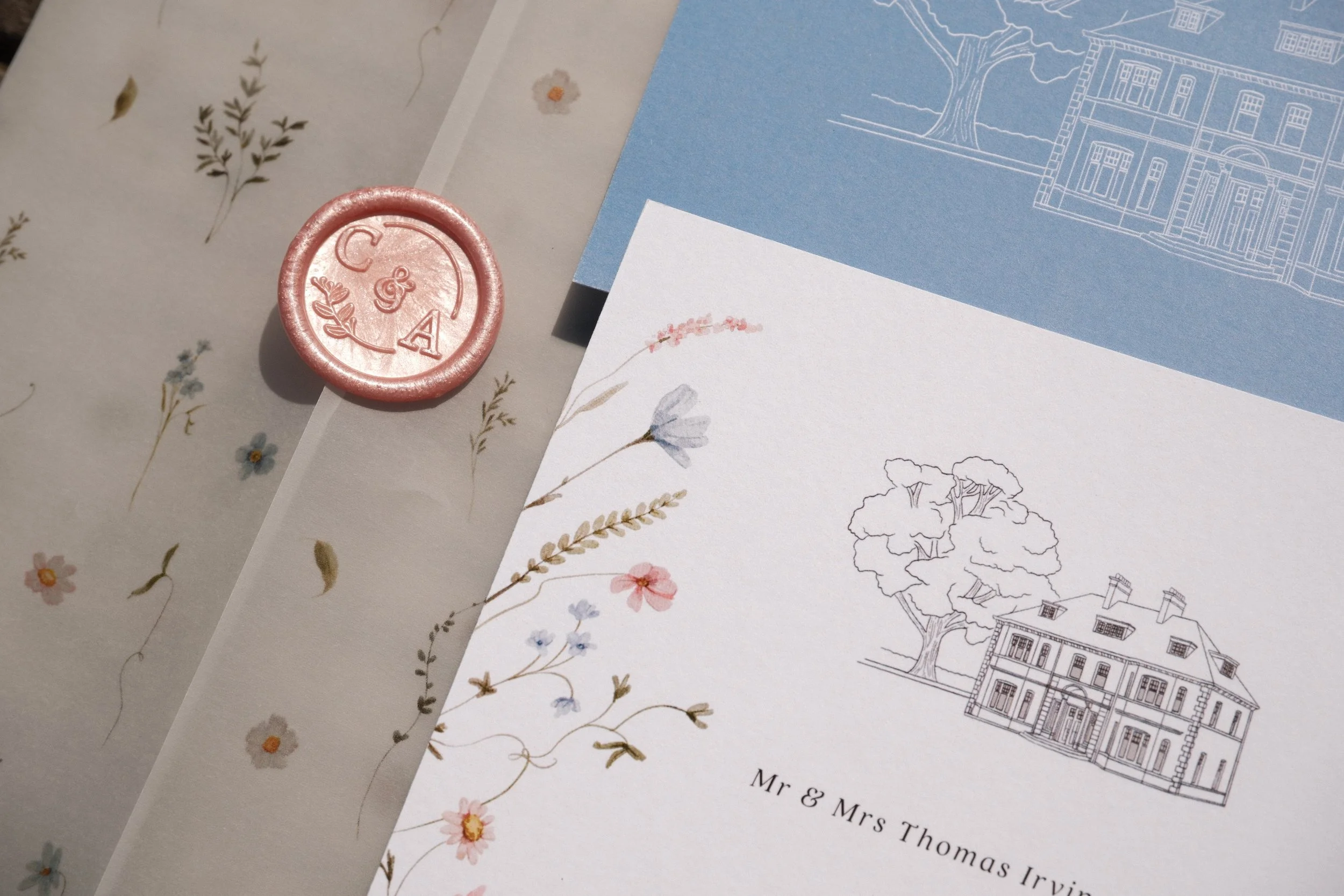 Custom wax seals featuring your initials, bespoke monogram or a simple design
